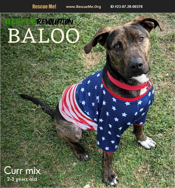 Baloo is sweet, huggable, goofy guy. He was spotted by a good Samaritan in a wire kennel outside under a tall leafy plant. His original owners were told by the landlord that he was too big to be in the house and not approved in the lease, so they moved his indoor kennel outside since they didn't have much of a yard or a fence. He was surrendered and has been doing great with his foster mom and foster-fur siblings. He meets any new human with a big hug (working on that), plays ball great with kids, and plays with pups of all sizes (husky-mix, Chi-weenie, and pittie/bully mix). He loves to cuddle and watch a movie as much ad he loves to play in the yard. He is a great pup with a quirky personality, loves car rides, walks well on a leash, and is kennel trained. If you think you and your family would be a good fit, you can submit at application at: https://form.jotform.com/RescueRevolution/Adopt