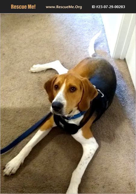 Milo is a sweet boy with lots of energy! A 9-month-old foxhound and treeing walker mix, he loves nothing more than following a scent and chewing a tasty bone. Milo is getting rehomed at no fault of his own. He needs to be with other pets in a yard, which I cannot provide. He is up-to-date on all vaccinations, including rabies, Bordetella, lepto, DT, and Parvo. He has also been administered his heartworm and Nextguard flea and tick treatments. Milo would prefer a backyard with plenty of space to play, and would really come out of his shell with another dog to play with. Once he's tuckered out after a nice long walk, he'll curl up in his blanket and go right to sleep. He is crate trained, knows basic commands, and is very food driven (which makes him easy to train). Great with other dogs and even strangers. Give him some beef liver and he'll be your best friend!