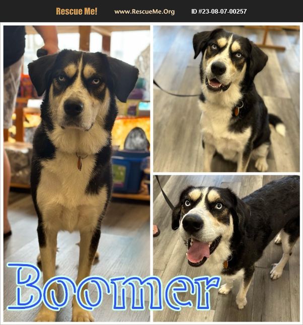 Boomer! This incredibly sweet and loyal best boy is Boomer. Boomer is a pyrenees/husky mix, aka cute hairy beast, and he is around 70 lbs. He is about a year and a half old. Boomer has a long, interesting story on how he ended up with us, but the cliff notes version is he was placed with a disabled person to be trained as their service dog. Unfortunately the organization who placed him and was to do the training appears to have folded leaving Boomer with his family, who love him, but need a service trained dog. They continued to work with him and he is now housebroken and crate trained (although we would expect any dog may have accidents adjusting to a new environment and routine) and knows basic commands such as sit, down and paw. He has clearly been well loved and cared for. The family has now been bumped up the waitlist for a service dog from another organization but they are restricted with the number of other dogs in the home and are already being granted an exception for the 2 dogs (there is a limit of one other dog). That means it is time for Boomer to move on and blossom to be someone's companion, ride or die, like he is meant to be. Could that be you? Boomer has lived with other dogs, both large and small, and is fine with them. He would also do well as your one and only. He walks well on a leash. He is a typical young dog in lots of ways (loves to dig in the garden and roll in dirt piles). He loved having a large fenced in yard in his last home. Boomer's adoption fee includes neuter, vaccinations, microchipping. He will also be heartworm tested and is up to date on preventatives. Interested? Please go to www.dogtownrescue.org to complete an online adoption application for Boomer.