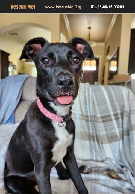 Nova is a super sweet, quiet girl who just wants a family to love. She's a little shy initially when meeting new people but she'll gently approach and give soft kisses. When she gets comfortable, she's a happy, playful girl who'll romp around outside with the other dogs or snuggle up on the couch with you. She's crate trained, house trained, knows basic commands like sit and kennel, loves treats so is highly trainable, and does well in the car. She does ok walking on a leash but can be unsure of new environments at times and looks to her people to reassure her all is ok. Nova does great with male dogs and bigger female dogs but she can try to dominate a smaller female dog. She wants to play with the kitties so can be very pesty with them and chase them but doesn't hurt them. For more information or to set up a meet n' greet, message Happy Tails Ranch Rescue via Rescue Me or on FB. She could be transported out of state for a loving family.