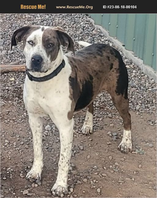 Shatzie is a very sweet loving girl that is desperate for a loving home. She plays well with other dogs and loves people. She comes when called even when loose, and rides well in the car. She is a leopard catahoula mix, with beautiful markings and one blue eye!