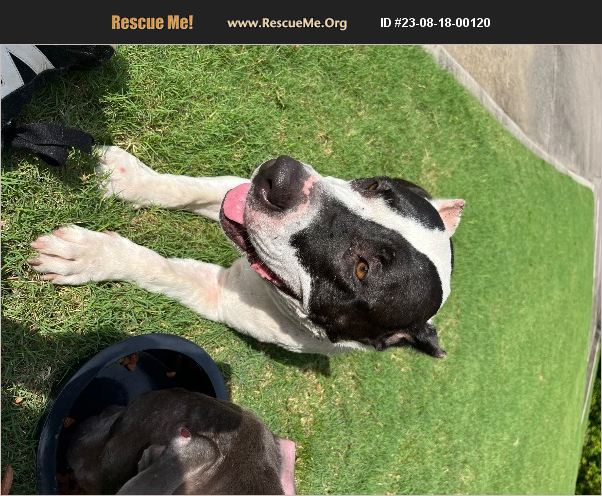 Female Black and White Pit Bull Mix. Very sweet and loving. Found in the woods, so a little beat-up. Could have been in woods for the past 8 months. Was found with a companion who is also a pit bull, but younger, possibly a year old.