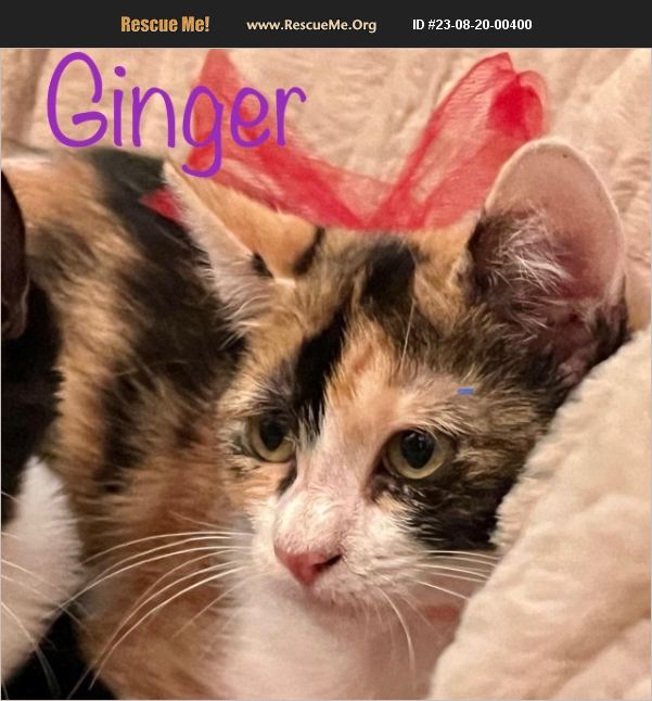 Ginger is a beautiful 3 mo Calico Main Coon. She is playful sweet and loves to be cuddled. She had a very rough start in life on the streets as a baby. But bottle fed and given good care she has turned into a beautiful kitten.