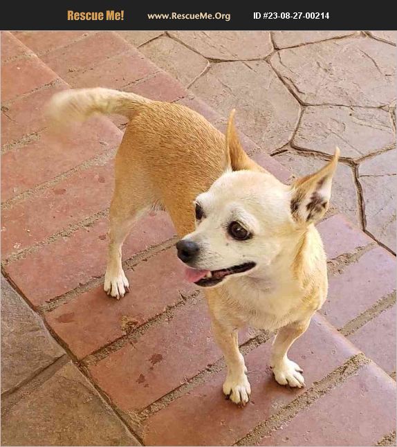 HI - I'M SWEET AUGIE! I'm a 12-year-old (could be younger) little Chihuahua in need of a new foster or forever home. I weigh about 8 pounds! I was saved from a shelter with an abscess on my face (possibly bit by a snake), but after some good medical attention I'm good as new and in great health! I'm a sweetheart of a pup! I get along great with other dogs and I love people as well. I'll make a great lap dog and snuggler. Please email for an application.