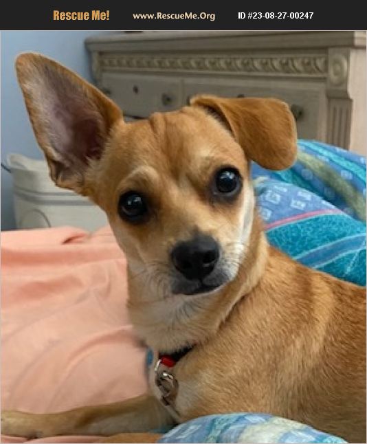 Patty is a 1 year old Chihuahua mix that weighs about 12 lbs. Her owner had no time for her and asked us to take her into our group. She has one ear up and one down which makes her so cute! Patty is very sweet and a little shy when she meets new people. She is good around other dogs, but does prefer dogs her size or smaller, we think she's a bit fearful of larger dogs. She loves playing with her toys and is not a barker. Patty is house and crate trained, up-to-date on vaccines, spayed and microchipped. If you are interested in her, please complete the application on our website: www.adoptmerescue.org. LOCAL AREA ADOPTION ONLY