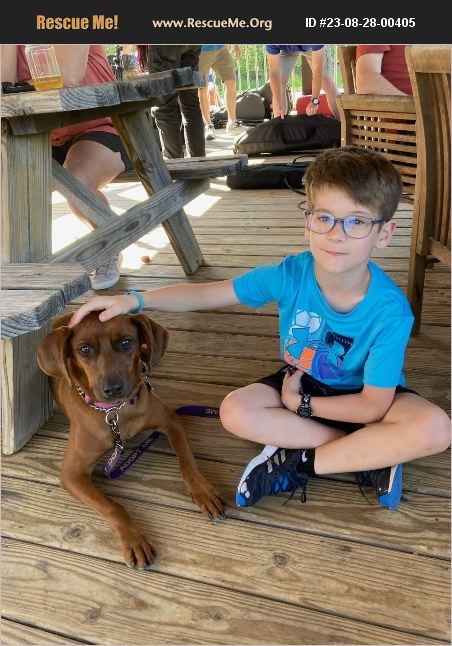 Ruby is a very special 2 �%BD -year-old Redbone Hound mix. She is a beautiful chestnut red color, has a soft, shiny coat, and is in perfect weight at 54 pounds. It is hard to imagine that she was a starved, sickly puppy when she was found a year and a half ago. Ruby was very scared of people when we first started working with her. Now she loves the folks she knows but is still a little shy around strangers. She is getting better every day, but she will need someone who understands shy dogs and will be patient with her. She loves her doggie and kitty siblings and gets along with all the dogs she meets at the dog park and elsewhere. She would do best with another dog in the home. She also would need a fenced-in backyard as she loves to run. Ruby is house trained, does not destroy anything when left alone, and knows most obedience commands. She loves to go to the dog park, play on agility equipment, and fetch balls. She is medium to high energy and loves to run, so she would make a great jogging buddy. She is presently being fostered in NC. If you think Ruby is the girl for you, call Naomi at 910-528-6588