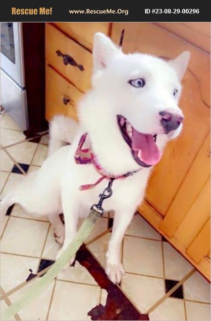 White purebred husky female named Storm. Almost 2 years old. Very affectionate, loving and energetic. Crated and responds well to commands.,