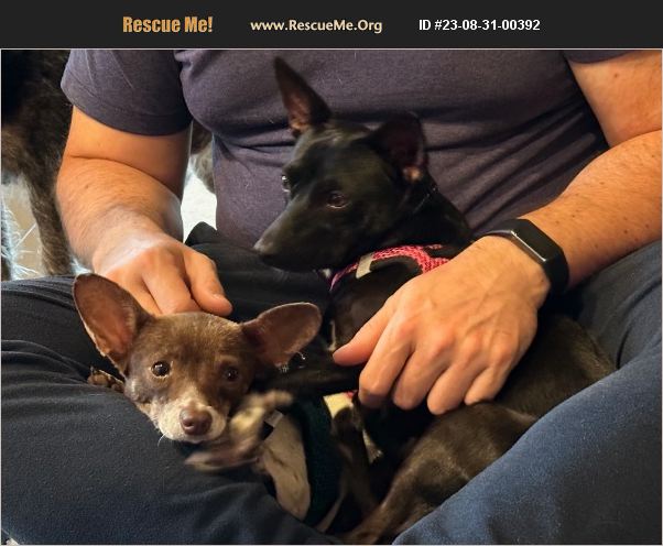 Chi mix Bonded pair. Going out as bonded pair, so must take and keep both. They're highly connected dogs. Will be requesting periodic updates, to see how they're coming along. Animal Rescue of the Rockies is the rescue of record. I am their foster and the one who 'found' them in South Texas and arranged for the rescue with ARR. Females, spayed, and all shots. Microchipped. A couple years old each - thus extremely high energy. Both will need to be taken together and kept together. Ideal adopter profile - young couple, etc., someone with lots of energy themselves, like them, no other animals ideally (one shows touch of dog aggression with one of my animals); fenced yard would be great, also would be great if someone works from home, as they love regular contact. Feel free to reach out with questions.