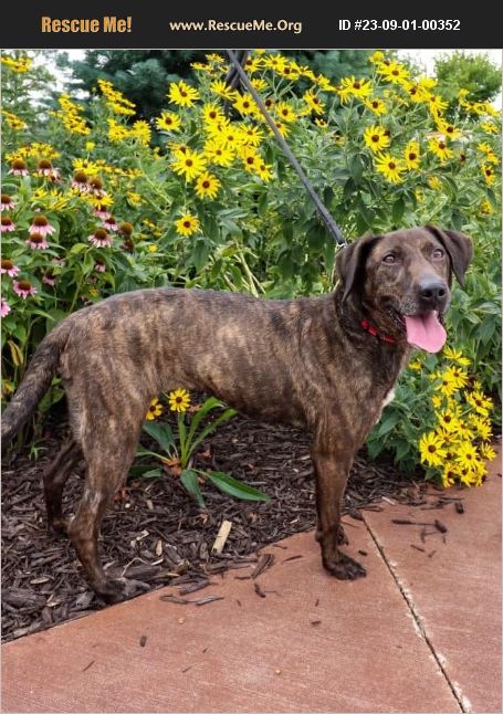 Name: Roxie Age: 2 Breed (as listed on paperwork): Plott hound Gender: Female Weight: 40 pounds Altered: no Crate Trained: yes Housebroke: yes Good with kids: none in foster home but I believe she would be good with kids Good with dogs: better with submissive males it seems Good with cats: she is a little too interested in them, but hasn't been aggressive to them. Foster location: Balsam Lake Fee: $100 (with a separate $100 deposit check that is shredded with proof of completion of spay/neuter) that includes age appropriate vaccinations at the time of adoption, microchip and health certificate. Please apply for me https://www.shelterluv.com/matchme/adopt/HFAH/Dog (403644-DS) **Meet and greets for approved applicants must happen within 3 days or the closest weekend (for long travelers). It's in the dogs/puppies best interest to be placed into their furever homes in a timely manner. All household members must attend the meet and greet. Roxie is such a sweet and special girl. Her background is unknown, but she came to us under much duress after being at the shelter for 3 months in Kentucky. She was on the 'last chance' list, and was the very last pup on the bus after HFAH put out an SOS to save her life! She got her ticket to WI in the nick of time, and we couldn't be happier to help her and hopefully find her furever home! The good: Roxie LOVES people! She is so happy, bouncy, and butt-wiggly whenever you're around, she wants to be by your side. She is super eager to please and is learning her indoor manners and some basic commands quite easily. She likes treats, pets, and toys and is so joyful you can't help but smile! She is goofy and playful and ever so cute with her big brown eyes and brindle coat, she always seems to be grinning! She does well in the kennel, and settles down quickly. She is food motivated so treat training works well. Now, the bad: Roxie can be dog selective and reactive, especially with our female dog and first time meetings with unknown dogs. She gets too excited and takes 'rough play' a little too far. Her dog aggression seems to be triggered when she gets over stimulated. She gets this way when our cats are around and if our female dog pushes back, or when she feels the need to show dominance. For these reasons, we think she would be best as an only-dog, or with very slow introductions and wearing a muzzle until she can be trusted with the other dog. In the time she has been in our home she has improved, but we still supervise anytime she is interacting with our other female dog. She has taken well to wearing the muzzle while on walks and seems calmer when wearing it. She will need a patient person to help her focus on you and hopefully learn to obey her commands when meeting new dogs, and close supervision until she can be trusted with them. Back to the good: She really wants so badly to have stability and love. If you take away the reactivity with dogs, she truly can be the sweetest girl you'll find anywhere, and she shows no aggression with people. She is curious and affectionate, has learned a lot in such a short time, and is a perky girl who will melt your heart! She will blossom with your love and patience, and we believe she can mellow with time and would take well to counter-conditioning/ desensitization training to improve her interactions and aggression with other dogs. Please consider your situation and apply for Roxie! Be that 2nd chance she deserves- you will be rewarded with all the oodles of love and tail-wags this girl has yet to give! S