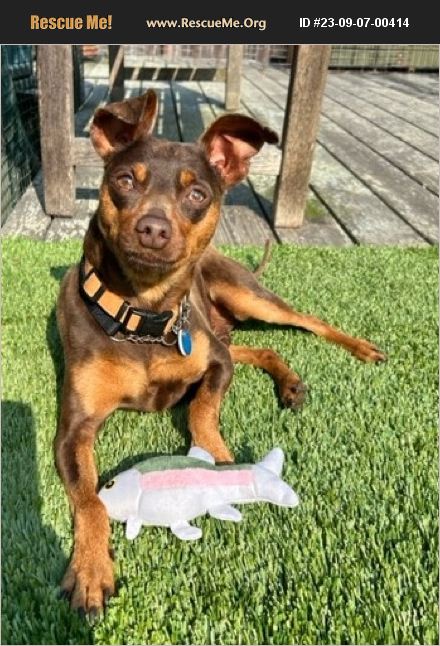 MEET Willie! Willie embodies all that a true min pin has to offer. He is smart, fun, cuddly, sweet, active, curious, and stubborn. Willie is eager to please, has learned a lot and is a quick study who thrives on praise and, of course, treats! Willie came to his foster home knowing pretty much nothing, a blank slate. We suspect he was previously an outdoor only dog. His coat was rough and dirty, his ears rimmed with fly bites, his tail naked and he was recovering from puncture wounds. He was hesitant to trust, possessive of food and toys. With loving patience, he learned that we would not hurt him, that he would be treated kindly and welcomed into our home. He potty trained quickly, can use the doggy door, doggie steps, plays well with us and the other small dogs. He is learning that being picked up is a good thing and he absolutely loves to cuddle and get lots of pets. He has learned that the couch is ok but can't quite get that the coffee table isn't. Willie is learning to walk nicely on a leash and can be reactive to other dogs, especially large dogs. He has no issues meeting new people and greets them with lots of wags. He learned the commands 'sit 'and 'come', and is starting learn 'wait', 'drop it',' leave it' and 'bring it'. He sleeps quietly in his crate overnight, loves squeaky and chew toys. He will entertain himself, emptying the toy box and flinging toys around. We are looking for a home that understands that Willie has much to learn and someone that will love him unconditionally. His perfect home would have a yard to sun and play in and other small dogs to play with and keep him company. No apartments or children under 12 for this very active and playful boy. Are you the home this loving, bright boy deserves? If so, please submit an application to adopt and let's see if you and Willie are a match.