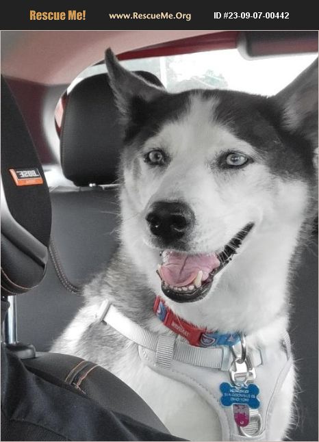 I acquired Sapphire about 6 years ago. We believe she was 1 year old at the time. We received Sapphire from a friend of a friend who was a police officer. He took custody of Sapphire during an arrest. The police officer was given custody of Sapphire but he already had a chihuahua and Saph did not get along with their other dog so I offered to take her. Since we have had her, she has been a great dog but has had some separation anxiety, and has never been a fan of the vet. We give her prescribed Trazedone when she sees the vet to keep her calm and anxiety meds once daily to help with the separation anxiety. Her anxiety also means she is a social eater and typically won't eat unless you are in the room with her, or she will carry some food to where you are and eat it off the floor there. Outside of those issues, the only other health/vet issue she has had was a cyst on her eye lid which was surgically removed. She is up to date on all vaccines and heartworm meds/tests. Sapphire is potty and crate trained, but she does not do well if she is kept in the crate for extended times due to her anxiety. As a somewhat typical Husky, she find ways escape and needs to have a yard to run around in, or someone who can help her work out all her energy. Sapphire has been great with my friends and family but had never been great or comfortable when kids are in the mix without close supervision. Last year my wife and I had a baby who she had been very affectionate with but now that he is crawling she had been acting aggressive towards him. Recently she jumped on top of him and scratched his face deeply. The baby is ok, and will have no lasting injuries from the incident, but we no longer feel it is safe for them to remain in the same home and believe they would both be happier if Sapphire had a new home with no kids to live in. Outside of this incident she has never done anything like this to him, but has growled a few time if he crawled near her food. During this incident, she wasn't near any food and gave no warning so I'm not sure what caused such a dramatic reaction. Saph has had some issues with not understanding how to play nicely with little kids (rushing up to them or growling if they run close to her) but has never lashed out like this. Sapphire is truly a loving dog and is very chill for a husky. She loves laying around the house, and running around with zoomies outside. If there are any questions please feel free to contact me and I will provide more information.