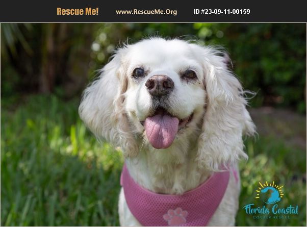 Say hello ������%8F� to our beautiful Buffy, a 12 years young, 26lb cocker spaniel girl. She is very sweet and loves to sit in your lap and gaze into your eyes when you talk to her like she understands your every word! And who can resist those precious cocker spaniel eyes! Buffy is good with other dogs, playful with them and very active for her age. She enjoys going on walks and has great manners when meeting other neighborhood dogs. She is a little wigglebutt, and her tails starts wagging as soon as she sees someone coming her way. She prances right along and happy to go on a mile long walk. We have not seen her around cats or kids yet. She has good house manners and follows her foster mom from room to room, settling into the closest available dog bed. LOL Buffy also rides well in the car. Buffy recently had to have 15 teeth removed but she handled it like a trooper and still has a great appetite. She also takes daily dry eye drops like a champ. Buffy is a precious little girl who will bring great joy to her forever family. If you are interested in opening your home to Buffy, please completed an application through our website, www.floridacockerrescue.org. Her ADOPTION FEE is $225.