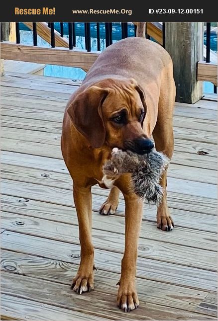 4yr old red bone coon hound/treeing Walker hound mix. Very sweet personality, eager to please. House trained. Needs place to run or be with active family. Owner recently widowed and had to sell farm.