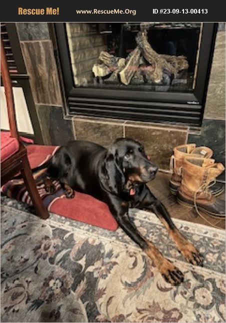 Beautiful Black and Tan Coonhound needs to be re-homed. Owner has cancer and can no longer take care of him.