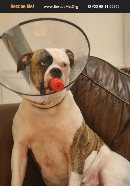 This animal is available to licensed rescue groups only. Please do not enquire unless with a licensed rescue group. 2 year old spayed female American Bulldog. Has anxiety issues, hyperactive, ocd. Will do good with someone who can vigorously exercise her. Hates loud noises and Thunder. I can't exercise like she needs to be.