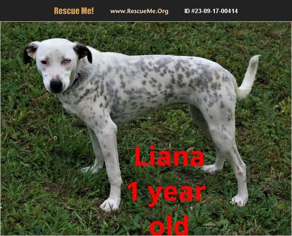 Liana is a 1 year old that looks like a Dalmatian / Lab mix baby girl! She has 1 blue eye and 1 brown eye and is covered in spots! Her mother was rescued by animal control from an abuse situation and she had 8 beautiful puppies while in the pound when they were charging her owner. Mother and puppies were brought to the rescue as soon as they could be released from animal control and all are thriving! There mother is 30 lbs and looks like a bull terrier mix because she has such a rounded face. Liana weighs about 35 lbs. Lianna runs the group. She is a people pleaser and loves to be scratched behind her ears. She's your perfect southern gal, sugar and spice and everything nice and will put her unruly brothers in their place in a heartbeat. She is spayed, vaccinated for her age, dewormed, and heartworm negative. Her adoption fee is $250. To apply to adopt go to roseacresrescue.org.