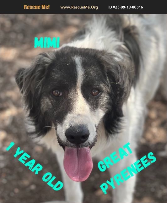 This is MIMI, 13 month old Great Pyrenees cross. She is wonderful with kids,dogs,cats and just a lover. She loves to play with ever dog she sees. Make Mimi a member of your family please inquire about her.