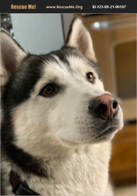 Intelligent but untrained husky who was adopted as a stray from rural Tracy by an elderly couple. He needs to be with a younger active family.