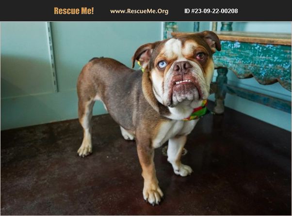 Hey folks! I'd really appreciate it if you took a minute of your time to read about lil ole' me. The name's Chopper! I know�'�|pretty fitting for a Bulldog huh? I probably don't have to say this because I'm sure you can see from my photos, but I am QUITE the looker. I mean really, a chocolate and tan Bulldog with one blue and brown eye? You can't beat that. I'm not sure how a handsome guy like myself wound up on the streets, but thankfully some kind people rescued me. Originally found covered in ticks and dirt, I promise I am a street dog no more! I much prefer the luxurious life of treats, pets and comfy beds. Don't let my typical breed's standards fool you, I'm no slouch! Some may even say that I'm exceptionally fit for a dog. So, keep that in mind if you're considering taking me home. I have quite a bit of energy and I often enjoy spending it on games of fetch and tug of war! So, if you're looking for a boisterous Bulldog, then submit an application to meet me today!