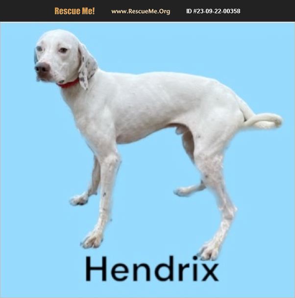 SWEEET POINTER BOY IN GAFFNEY SC SHELTER RUNS OUT OF TIME MONDAY (SEPTEMBER 25THTH) AT 4PM- PLEASE SPREAD THE WORD FOR FOSTER/ADOPTER AND PLEDGES-$500 IN PLEDGES WILL COVER SOME COSTS AND ATTRACT RESCUE IF YOU CAN RESCUE PLEASE EMAIL [email protected] IF YOU CAN FOSTER OR ADOPT PLEASE EMAIL [email protected] DON'T CONTACT THE SHELTER ABOUT FOSTERING AS THEY DO NOT HAVE A FOSTER PROGRAM Name: HENDRIX Kennel ID: OB 2 GAFFNEY, SC. Shelter Hold Ends: September 25, 2023 at 4pm. Breed: English Pointer Appearance: White/liver Gender: Male Estimated Age: 2yrs. Estimated Weight: 40lbs Health: Underweight. No other obvious issues. Bio: Hendrix is a Pointer that comes from a working kennel. These dogs will need help with confidence building and learning how to be pampered pets. They are used to living in a kennel and these young ones don't have much experience yet. The owner recently passed away and his family is trying to find homes for the remaining dogs. Hendrix was scared but a little braver than Hank during his evaluation. He is a sweet boy too. We can't wait to see him be pampered and spoiled with a family of his own. Housetrained: To be determined. Other Dogs: He did well with our tester. He is also currently housed with another male pointer and they do great with no issues. Cats: Non-reactive due to his fear during evaluation. We recommend using caution until he shows that he can be trusted. Children: We do not have kids to test with. We always recommend supervising children around dogs/puppies at all times. Sometimes our dogs/puppies are pretty active and might be too big for really small children and sometimes the children can be too rough around them. Leash: Some experience. Additional Information: Owner surrender. Arrived with Hank.