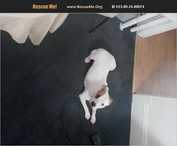 2 and half years old pit boxer mix. She is mostly white except on her ears which are brown.