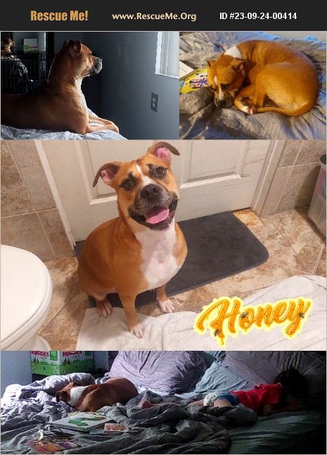Honey is a beautiful, smart, loyal young lady. At such a young age, she has already had a rough start to life. Pulled from AC with just 10 minutes to spare, Honey was living for months in overcrowded conditions, where she was sleeping on bare concrete floors, lucky to get 20 min of human attention a day. But even after her ordeal, she is an amazing companion and just the right mix of playful puppy and cuddle buddy! Honey is a 2 year old Boxer mix, weighing in at about 50 lbs. She comes spayed, vaccinated, and up to date on Flea, Tick and Heartworm prevention. Honey loves all humans, big and little. She is dog friendly, and loves to play play play! Honey is house and crate trained, and has never had an accident. Honey knows basic commands like sit, paw, kisses and more! She is the perfect mix of snuggle bug and fun adventurer! Honey is learning leash etiquette, and her pulling is improving daily! A fenced in yard for her to run and blow off energy, would be ideal. Honey is ready to finally find her forever family! (But she'd gratefully welcome a temporary foster, too!) Home checks are required. Please do not contact if you are not willing to allow a home visit. Rehoming fee applied. Fosters are financed by rescue.