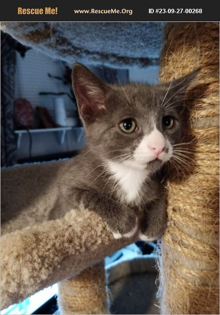 Bruiser is very mellow, a chunky boy enjoys running in the cat wheel and rough housing with his siblings. Loves cuddles and sitting next to you. Grey with white feet, belly and nose and has a grey beauty spot. Please submit an online application on our website: https://savingsagerescue.org/adoption-application/