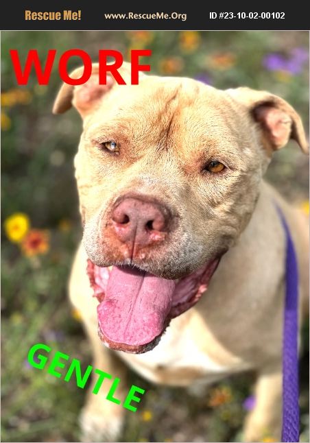 WORF is a gentle boy.�%A0 He absolutely loves human attention.�%A0 You can always find WORF either laying in the warm sun or lounging in his house, he is great and loves his daily walks and enjoys to slowly mozy down the trail and see what other kind of critters or which of his buddies has been snoopoing around the same trail.�%A0 WORF is current on all of his vaccinations, as well as neutered and microchipped.�%A0 WORF is currently living in TEXAS but can be transported to anywhere in the United States and CANADA.�%A0 Please inquire about WORF to set up a meet and greet and fill out or online application to get the process started to get this sweet guy a place to call home forever.