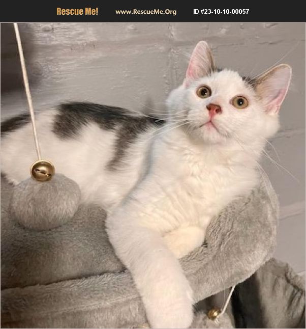 Leonard is an adorable male white with tabby kitten. He is one of a litter of kittens rescued from under a garden shed, when their feral mother was trapped and spayed. The litter was given names after the Big Bang Theory (foster mom likes themes). Leonard is about 5 months old. He is the largest kitten in his litter, and will grow up to be a beautiful fluffy cat. Leonard is very friendly, always up for a cuddle. He likes to be up high and look down on his surroundings. Leonard will only be adopted as an indoor family pet. He has been neutered, tested negative for fe-leuk/FIV, has been dewormed and is up to date on all his age-appropriate kitten shots. For more information on Leonard or to adopt him, please contact foster mom Jackie (call or text) at 320-761-0256. Leonard's adoption fee is $75 plus tax ($80.16) but if he is adopted with another kitten the fee is reduced to $50 per kitten ($106.88).