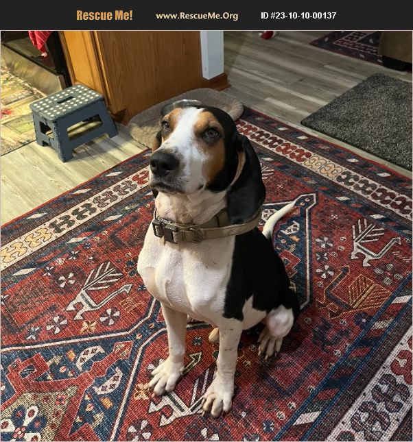 Tri colored walker coonhound to a good home. In December of 2022 we found him on the side of the road in terrible condition. He was emaciated, covered in ticks, scabbed and bruised, and looked like he was not long for this world. We fostered him back to health and he is ready to be re-homed. He is very sweet and small dog friendly. He is very sweet and small dog friendly. He is also now house and kennel trained. We think he was used as a hunting dog and his previous owner ditched him on the side of the road, so we are looking for a good home. He is not fixed and is also positive for heartworms. He is currently undergoing monthly treatments, (slow kill per vet instructions) His name is Buck and needs a loving family who is going to give him the attention he deserves.