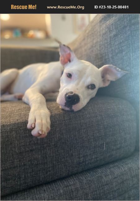 Domino is a very sweet and affectionate pup that loves attention and cuddles. He has met many people of all ages (even toddlers!) and has enjoyed them all. He gives lots of kisses and loves to be a lap dog if you will let him. He is about 6 month old and only weighs about 30 pounds. He won't get very big. Domino is submissive with other dogs (even great with giant ones!) and likes to play chase, ball or tug. He loves to lounge in the sun or in front of the TV. He is quiet and low maintenance but will take up the BIGGEST chunk of your heart.