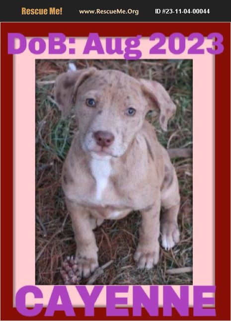 CAYENNE and her siblings were saved from a kill shelter in Louisiana and arrived at Give a Dog a Home Rescue, in Sebec, Maine on 10 October 2023. CAYENNE is spayed, core vaccines, monthly preventatives and is microchipped with 24PetWatch. She has an estimated date of birth of August 2022 and at the time of transport weighed around 5 pounds. She will need her rabies vaccine when she reaches the appropriate age. We have no way of knowing the breed, it is up to individuals to look at the pictures and videos to make up their own mind. We take a lot of pictures and videos and don't always have the time to post them on the dogs individual webpage and adoption site, so we ask that you go to the rescue YouTube channel and photo albums on our Facebook page to see a LOT of pictures and videos. We are looking for families that have the lifestyle that the dog needs to lead a healthy, both mentally and physically life, who can afford a GOOD quality food, toys and treats and understand the importance of veterinary wellness checks. CAYENNE is located at the rescue in Sebec Maine and is available for an adoption fee of $550. Interested families are required to complete our application process and once approved schedule an appointment to come to the rescue to meet and take home their new best friend. Our process takes 1-2 days as long as we are able to talk to references, so be prepared to be approved (hopefully) to adopt within a few days of submitting the adoption application. https://giveadogahome-rescue.rescuegroups.org/forms/form?formid=5838 HOUSE TRAINED - All of our dogs are located in the kennel building so we are not able to say if a dog is house-trained, however, they do have access and use the dog door to access their run, play area 24/7. FOOD - We feed a variety of high quality brands and flavors including, chicken, turkey, beef, lamb and fish generally alternated daily. CATS - As the dogs are in the kennels, we are not able to say how they are with cats.