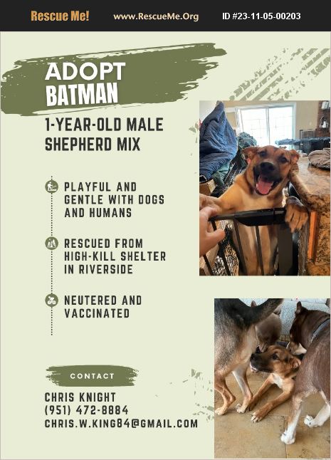 Batman is the sweetest, goofiest, most playful boy! He loves all dogs and deserves the best home.