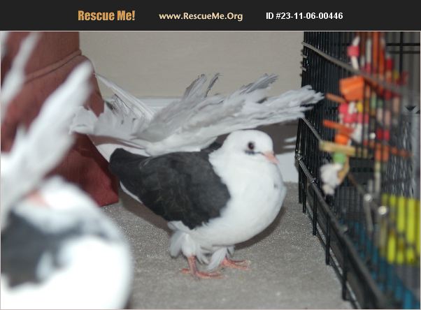 One of two female fantail pigeons for rehoming. Hatched in May 2023. Vet checked, no parasites, DNA'd tested as female. House pet. Never been outside. Easy keeper. Serious inquiries only! Email inquiries. Need to rehome as soon as possible the two fantail pigeons!