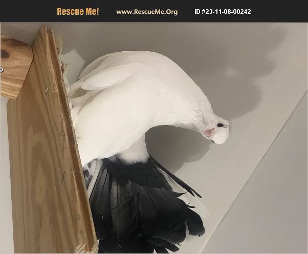Very sweet, shy fantail pigeon. My roommate moved to a different country and couldn't take with him. I don't know how to take care of birds and don't have the time so I need to find a good home for this guy. Believed to be male but not 100% sure. Can come with food and large dog crate if you pickup.