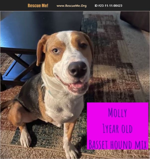 Molly is a one year old basset hound mix who weighs around 45#. She's got short legs and a longer body. Molly is a tripod, missing a front leg, but that doesn't slow her down one bit! She loves people, is great with other dogs but hasn't been cat tested. Molly does well on leash & is mostly house trained. Molly's adoption includes a mandatory spay contract. Molly is vaccinated, on prevention, & microchipped. We can help make transport arrangements for adopters not local. Please contact me & request our adoption application if you'd love to make Molly part of your family.