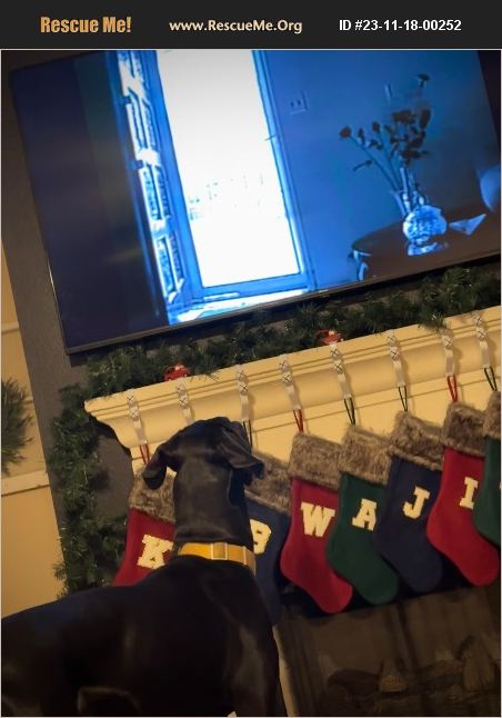 Black Dane with white on chest. Very loving and neutering. Great companion.