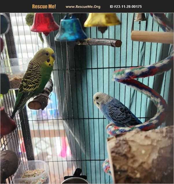 We have 2 male parakeets looking for a new home. The blue parakeet is named Rio and the yellow and green parakeet is named Tiki. These are both under 1 year old. These birds need a home where they will get lots of attention. The cage and all toys, food etc. will go with the birds.