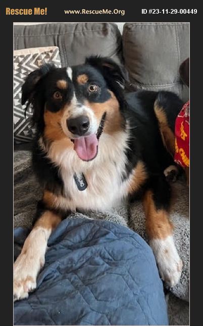 Bruno is a 2-year-old black tri-color Australian Shepherd (possibly a mix) and weighs approximately 70 lbs. He is fully vaccinated, neutered, microchipped, on heartworm prevention, and tick & flea prevention as well. Bruno in the past completed basic obedience training through PetsMart. He has also been working on more training with his ASF foster mom and has become proficient in 'leave it', 'stay', 'wait', along with other basic commands. Bruno is also crate trained. Bruno has a very playful personality and a lot of energy; he is always ready to play or accompanyyou on a walk, run, or hike. Though a very active, energetic boy this sweet boy is also very cuddly. Bruno is always welcoming to any affection from his humans whether it's pets, scratches, or belly rubs, or even curling up by your side on the couch or bed if you allow him to. Bruno loves any toys, especially those he can chew or chase. He loves it when you throw toys for him to chase and fetch, especially tennis balls. Bruno also enjoys playing in water such as play pools & sprinklers and even occasionally jumps in his foster family's pool to lounge on the first few steps though he has not actually swum. He also loves playing with other dogs. Bruno has loved living and playing with his foster dog-brother and previously lived in a household with 3 other dogs. However, it is unknown how he does with cats or other small pets. Bruno is always excited to meet new people and dogs. Sometimes he becomes so excited he jumps and cries loudly. This is something Bruno has been working on and improving on through training with his foster parents. Because of his over-excitement, other dogs are sometimes initially scared of Bruno and his big personality but do warm up to him. Bruno loves all people including children, but he hasn't yet learned to adjust and adapt his excitement and play style with small children; with that being said, he would probably be best in a home with no children younger than 16 years old. If Bruno sounds perfect for your family, please fill out our application:https://www.australianshepherdsfurever.org/adoption-application There is an additional $20 microchip fee which inludes registration and transfer to his new family. All adoption fees are used for future rescue efforts.