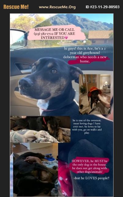 Ace is the most loving, energetic, playful, cuddly dog i've ever known. He will love you more than life itself. Although he's not the same when it comes to dogs. He is VERY protective even over something as little as a toy. He has bit 2 dogs before with his previous owner who wasn't very present. None with me. He is also a CRAZY jumper so 6 ft backyard walls are needed and a decent sized yard. Be cautious on walks and if you see another dog, walk the other way. I know this sounds bad but if other dogs are out of the mix, he's the greatest dog you'll ever have :) i am having to get rid of him cause currently i own him in an apartment and got him because he was on a euthanizing list :/ unfortunately i am no longer capable of taking care of him. Please let me know ASAP if you would be a good home for Ace :)