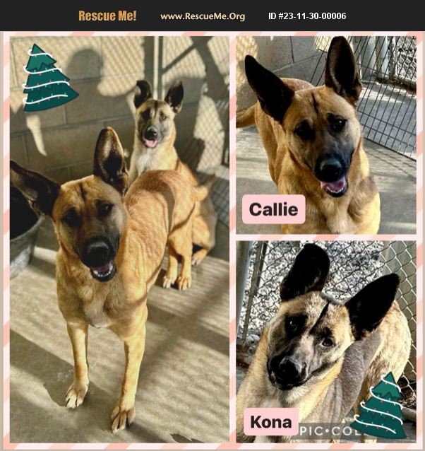 URGENT FOSTER/ADOPTER NEEDED! This is a very sad story. There are two beautiful Belgian Malinois, mother and daughter, living at a boarding facility in the high desert. We call them Callie and Kona. Last year Callie's owner drove to this facility and tied her up to the fence and drove away. The owner of the facility brought her in and put her in one of the empty kennels. Well guess what!! She was pregnant!! We are not sure what happened to the other puppies or if Kona was the only one that survived. Poor baby was born in an outdoor boarding facility. Recently, an employee of the facility asked Jennifer if she could help rehome them. Kona we estimate to be about 9 months old and Callie about 2 years old. From what we can tell, Callie loves the water. She is always splashing in her water bowl. Kona likes to carry around a garbage lid that's in the kennel. There is really not a whole lot for them to do in a kennel so they found something to entertain themselves. These two dogs are sooooo friendly and sweet and long for attention. I went inside their kennel and they just gave me all kinds of kisses and hugs. Please research the breed. They are very intelligent and easy to train. This breed absolutely needs a yard to run and play. It breaks my heart that Kona has lived her whole life here and her mother most of hers. How could someone just abandon their dog and never look back? If you are interested in fostering to get these babies out of this facility where they live outdoors in a kennel in the freezing cold or want to adopt, please call or text me at (714) 366-8170 to arrange for a meet and greet. Adoption process must be 100% approved.