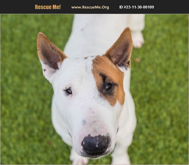 Hi, I'm Bullseye! Age: Approx. 3 years Gender: Male Weight: 43 lbs Breed: Bull Terrier Favorites: Investigating the play yard, treats Energy level: Moderate Training: None apparent at this time Other important info about me: I'm a chill dude and I'm not very much into toys, but I do love going on walks and exploring! I appear to get along with people of all ages and other dogs, but I haven't been tested with cats at this time. If you are interested in adopting me, please call 281-576-2417, email [email protected], or submit an adoption inquiry through this listing!