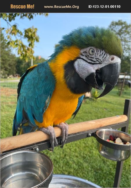 Toni is a 60+ year old blue and gold macaw. She cannot fly anymore due to a wing injury that never healed properly. She prefers men only. I inherited her from her first owner who had her for 60+ years. She hates women. Would be a great companion for a man looking for some company. She has seen the vet and is in great shape, should love another 20 years according to them. She eats pellets, fresh fruits and vegetables and nuts in the shell. She comes with her very large cage. It's measures 77' H X 40' W X 30' D and her wood perch. I have 3 of the 4 food cups. She loves to be outside when the weather is nice. Located in West Georgia about 5 miles off exit 9 on I-20. I have more pictures. She says hello, bye bye, stop, what, baby and a few others. She is in no danger and being well taken care of, but because I am a woman she will not let me touch her. I'd like her to be with someone she can be with all the time. With her previous owner she went everywhere with him and loved car rides. If you have issues calling, text the same number or email.