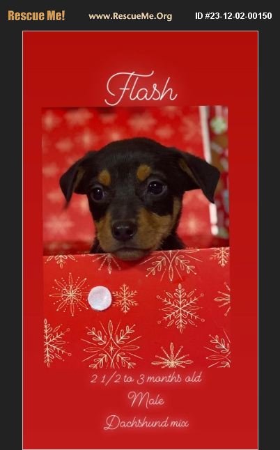 This is Flash! He is a 3 month old dachshund mix and ready to become your new baby! He is up to date on all his vaccines, microchipped and dewormed! He is great with all other dogs, cats and kids! He is super sweet and loving and loves to play! Please apply asap to get him before Christmas!
