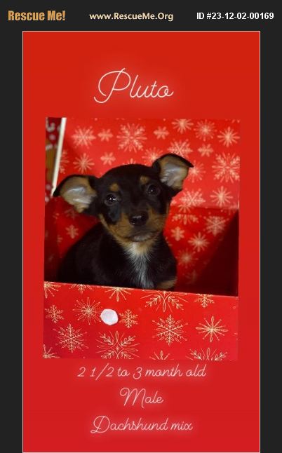 This is Pluto, he is a 3 month old dachshund mix and is up to date on all his vaccines, microchipped and dewormed. He is great with other dogs, cats and kids! He loves to play and loves to cuddle! Please apply to get him before Christmas!