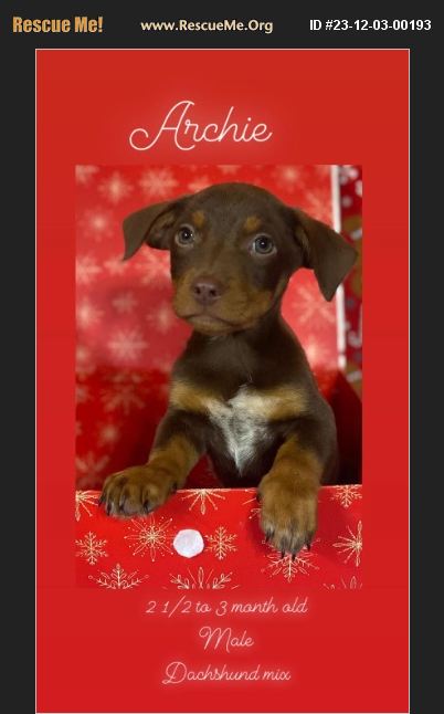 Meet Archie! He is what we believe is a 3 month old dachshund mix! He is great with other dogs, cats and kids! He is up to date on all his vaccines, microchipped and dewormed! He is very sweet and outgoing! please apply asap to adopt this sweet boy!