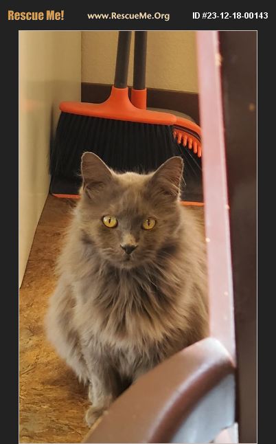 Part Main Coon Cat needs to be rehomed for Christmas! Adult beautiful gray cat. Isn't he pretty? Long soft coat. Very friendly and talkative. Loves to sit on your lap. LOVES to be petted. Rehoming fee of $25 - Available immediately. Not sure if it is a male or female no information if it has had shots or been fixed. He is a stray that we have been taking care of for two months. He's too sweet to not have a great home. It's obvious that he was someone's indoor pet at some point. I will give you a cat bed and some of the food he is currently eating. Would make a great furever companion. Please respond to this email. Depending on your location I may be able to deliver or you can pick up. Will need a carrier.
