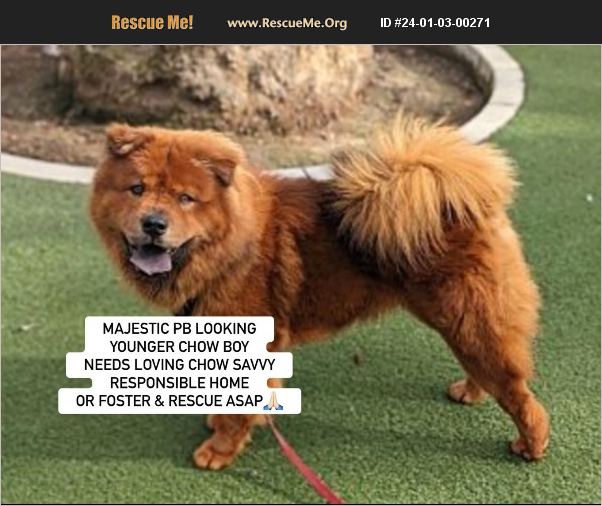 Courtesy Posting: OCEANSIDE/SAN DIEGO COUNTY, CA (S CAL)- ID 886803 AT SAN DIEGO HUMANE SOCIETY URGENT - MAJESTIC PUREBRED LOOKING, YOUNGER CHOW BOY IN NEED OF A LOVING, CHOW SAVVY RESPONSIBLE HOME, OR FOSTER AND RESCUE ASAP - WHO CAN HELP? PLS CONTACT ROBIN FOR HELP OR WITH INTEREST. Please help us find a loving, chow savvy responsible home for this younger chow boy who the shelter has fondly named 'Mufasa' after he was brought to the San Diego shelter. Unbelievably, he was found as a stray and stuck between a fence and wall, possibly for days. He also had a rope tightly tied around his neck where he had to be sedated just to remove it. Understandably scared initially, shelter staff and trainers has been patiently working with him. He now enjoys being pet on his head, as well going on social walks with other dogs which we have video of. The shelter noted he has not had much interest in other dogs though which is typical of the breed. However, if you do have another dog, the shelter would like to do a meet and greet. Otherwise, they would like to place in him in a calmer home, and definitely with someone familiar with the breed who will be patient with him after all he has been though. Mufasa is listed as 3 years young, and weighs 51 lbs, so he is slightly smaller than the average male chow. If you are interested to adopt this deserving boy, and have prior chow experience, please contact the shelter directly using this link: https://24Petconnect.com/DetailsMain/77637/40330310 or by calling and ask about ID number 886803. Mufasa has recently been neutered and is ready to go home. If you may be interested in fostering, fostering to adopt or helping, please contact [email protected] or Southern California Chow Chow Rescue Network who can try to pair fosters with a willing rescue group. We will be posting updates, more pictures and videos on Mufasa's facebook page at: https://m.facebook.com/story.php?story_fbid=pfbid0m7RKYLpaexfjehXhSm7gJJKGeqbaHtsjaB8bkAd8oLR6Qh66V1SL4BaumdaY9gHBl&id=783968124&mibextid=cr9u03 Note: to view contents of links, you will need to copy and paste each one separately into your browser.