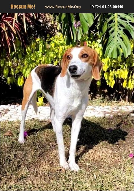 Candy is a very sweet, gentle, and easy going 2-year old American Foxhound looking for her forever home. She is great with people, children, and other dogs. She is also crate-trained, spayed, and fully vaccinated. Candy is normally very quiet and calm, but she has her moments of being playful and she loves to give and receive affection. She would be a great addition to any family. She weighs about 40 pounds.
