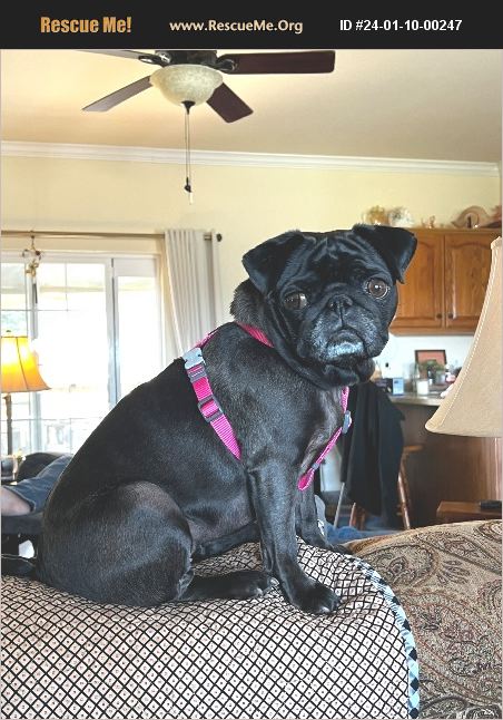 Nova is a 4 year old black pug. She is friendly to all cats and dogs, people and kids. She needs a home that is active with other dogs. She thrives in that type of atmosphere. She'd love a fenced in yard and she loves being outside too.
